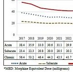 A CWCI Report to the Industry analyzes 2017-2023 opioid prescription data extracted from the California Department of Justices Controlled Substance Utilization Review and Evaluation System (CURES) database to track opioid utilization in the state, noting the percentage change in the number of opioid patients overall and within the workers compensation system from 2017 through 2023. The report measures changes in the average strength of the daily dose of morphine equivalents (the morphine equivalent dose or MED) and the average duration of opioid use for workers comp opioid patients and compares the results to the treatment guideline recommended levels to identify the proportion of patients whose opioid use exceeded guideline recommendations and how these proportions changed over time.