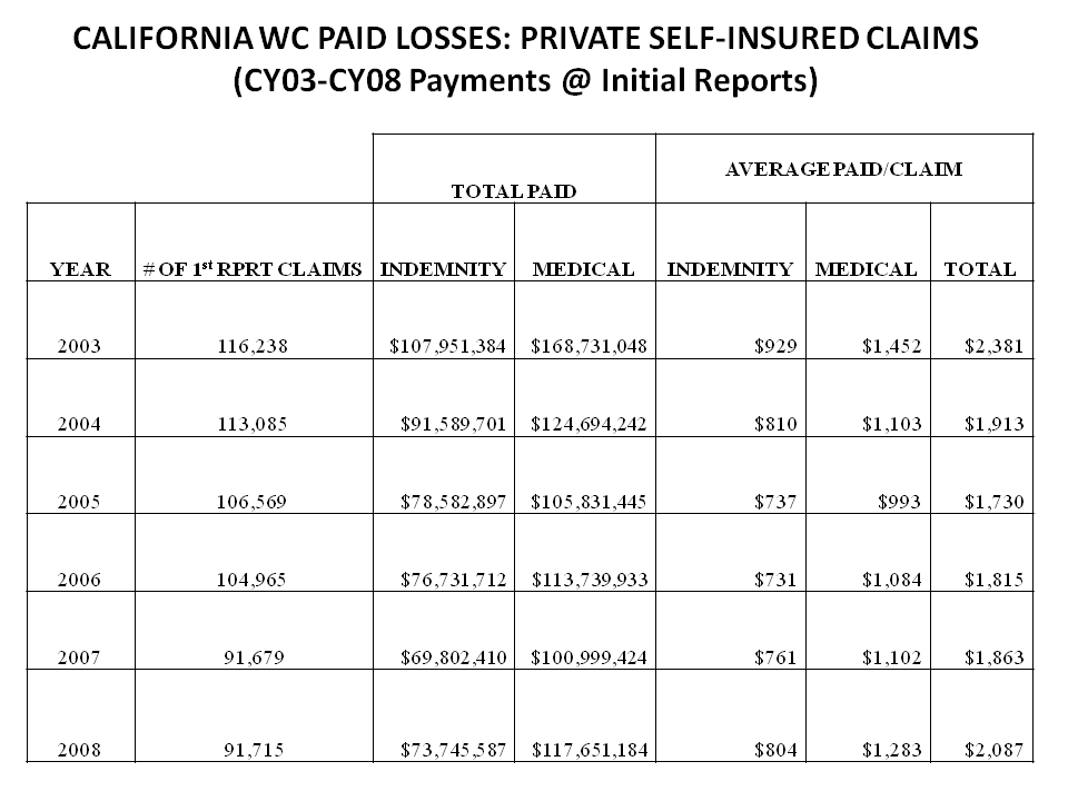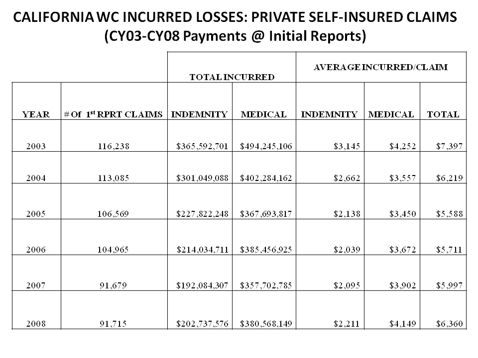 OSIP also compiles public self-insured claims data, which is reported on a fiscal year basis rather than a calendar year basis, so the public self-insured data now lags the private self-insured data by 6 months. Updated data from the public self-insurers must be submitted to the state by October, so the next report on their experience should be released by early next year. In the meantime, CWCI has issued a bulletin that includes tables and analysis on the public self-insurer paid and incurred losses through FY 2007-2008 (which also show post-reform increases), along with the newly released data on private self-insurer claims experience through the end of last year. Institute members and subscribers may access the bulletin by logging in at www.cwci.org. The OSIP has posted its annual summaries for both private and public self-insured employers from each of the eight most recent years on its website at http://www.dir.ca.gov